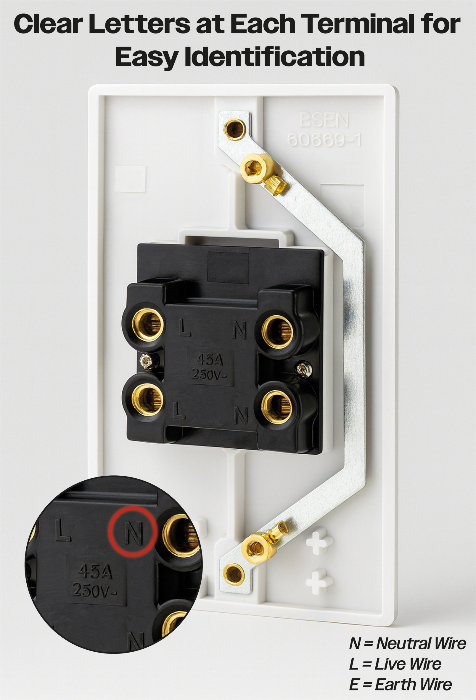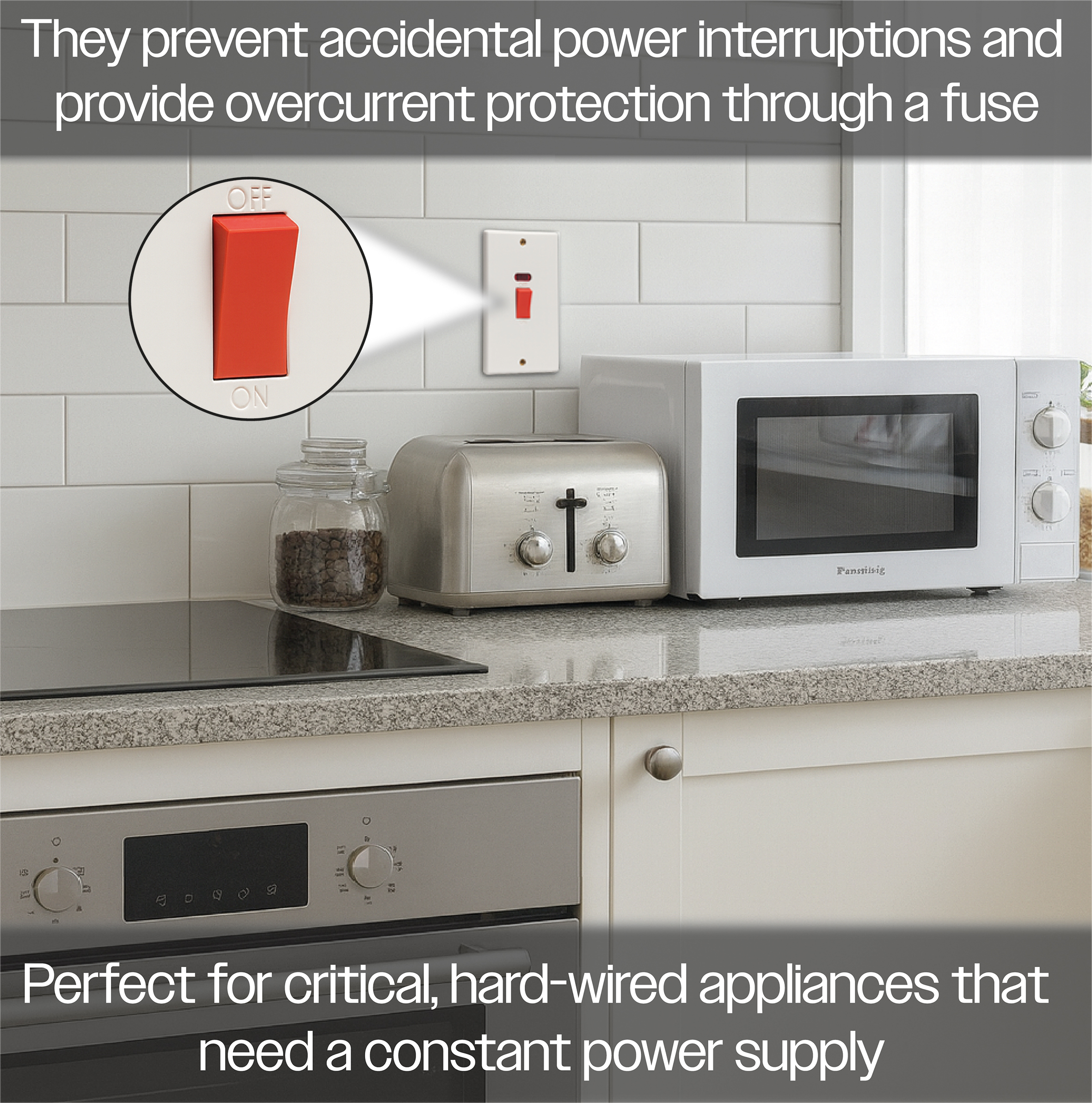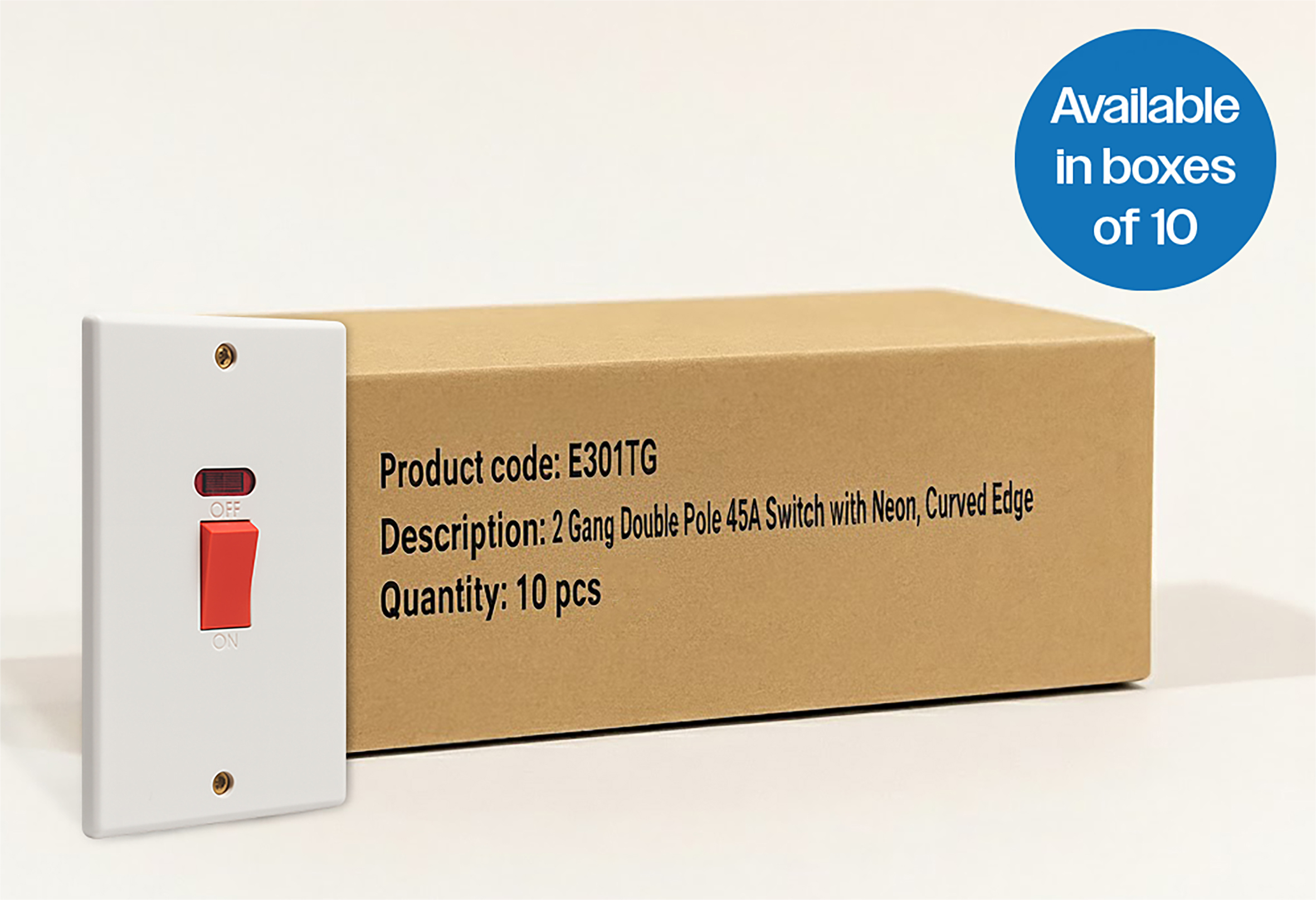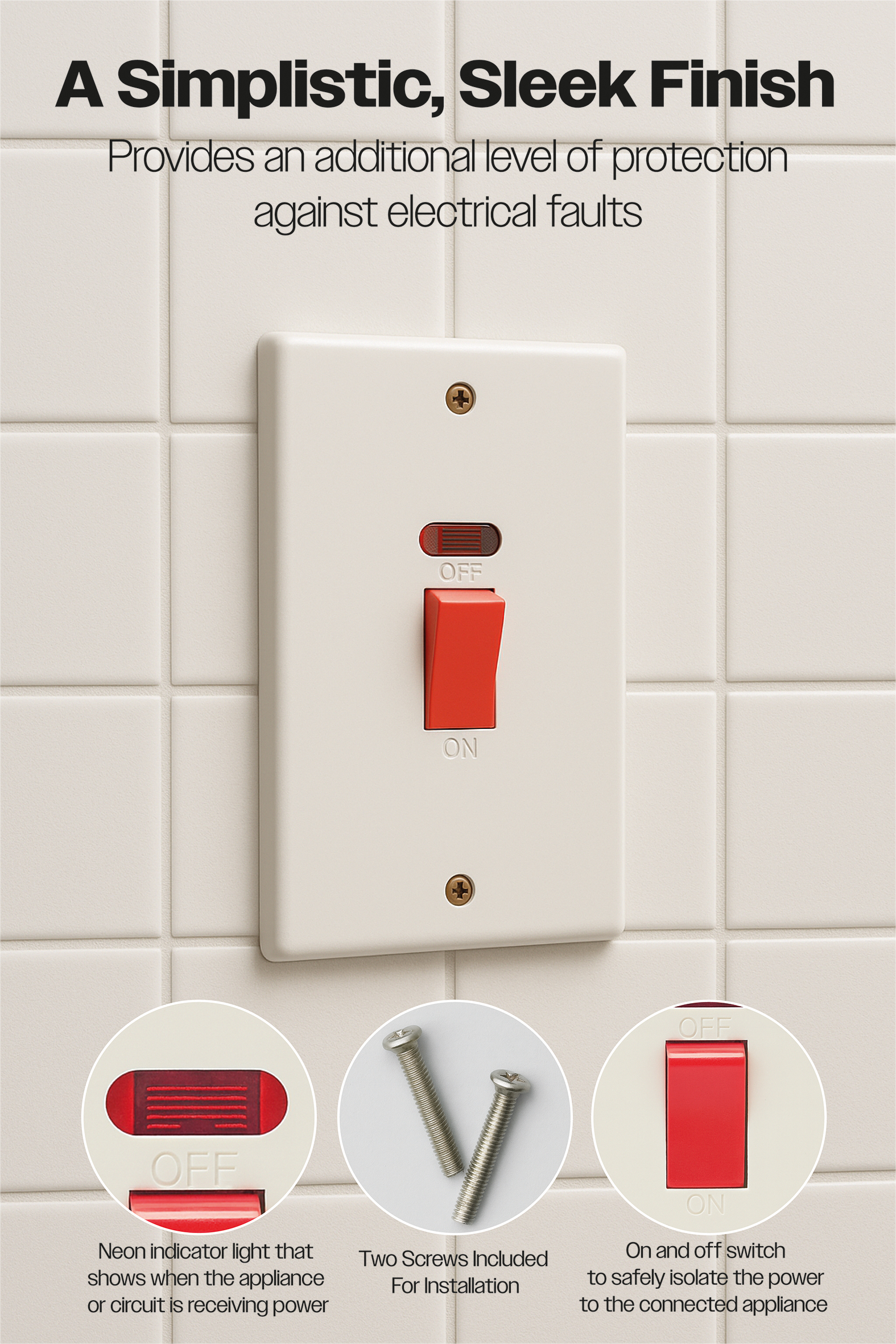 2 Gang Double Pole 45A Switch with Neon, Curved Edge