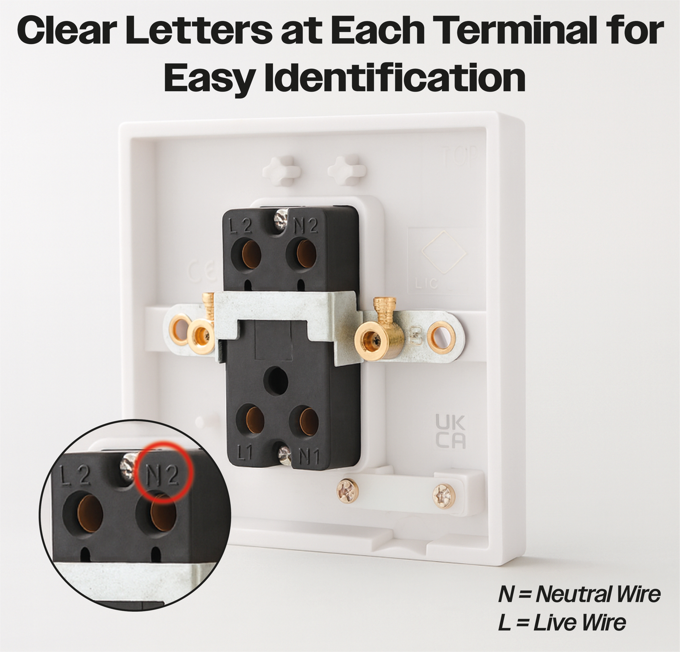 Standard, white double pole switch (20 A).