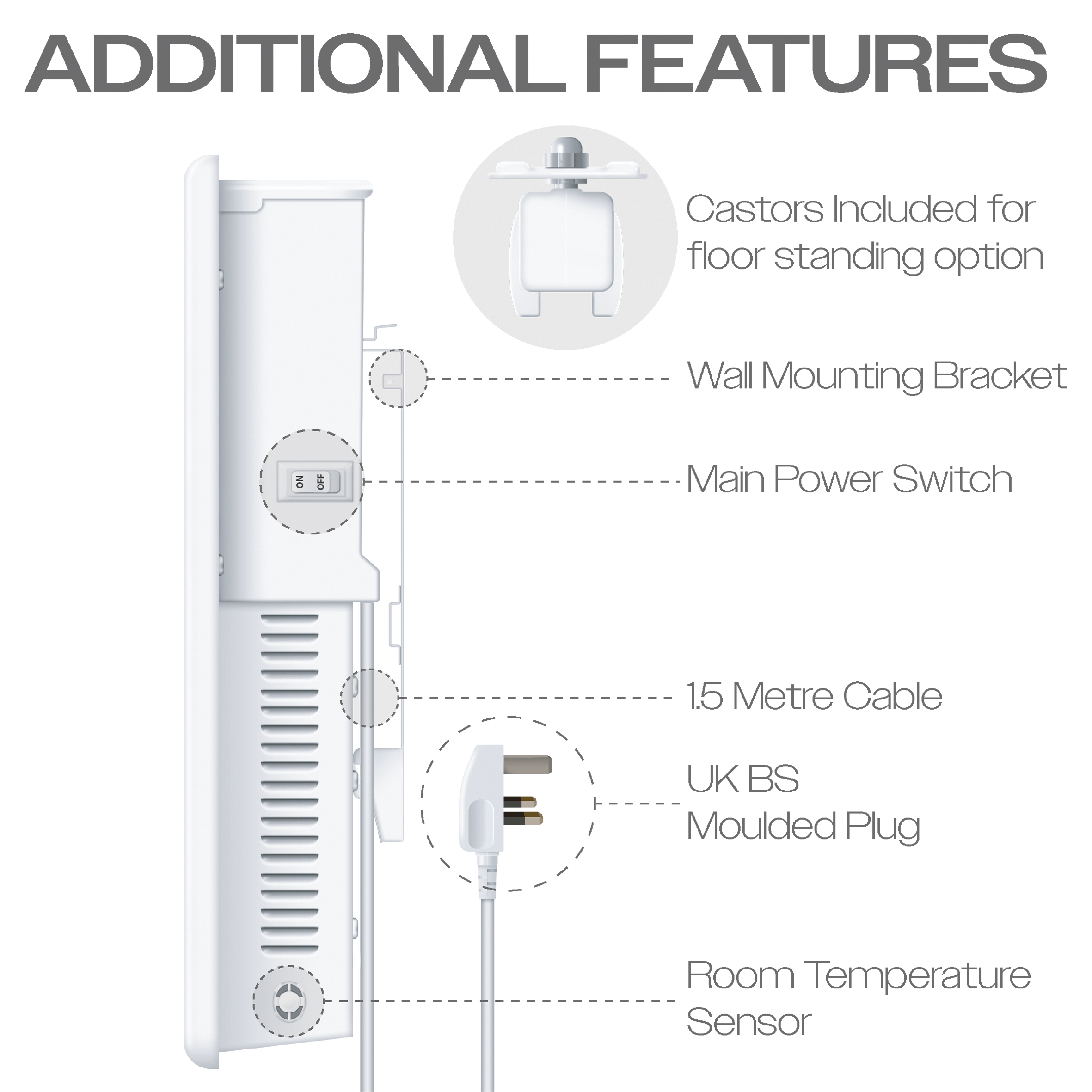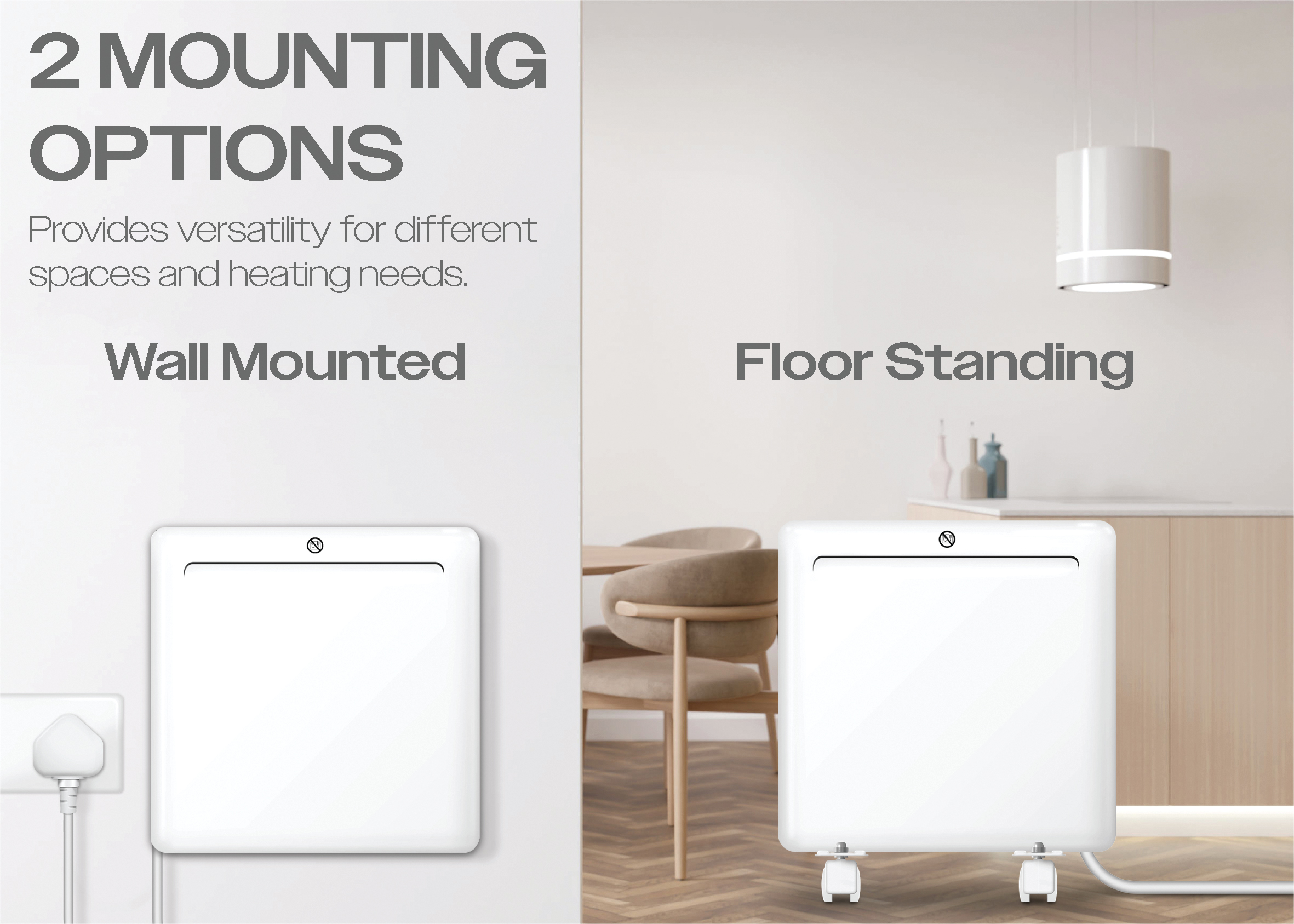 - Versatile installation options: Easily mount on walls or place on floors with adjustable feet and smooth glide castors, ensuring effortless setup and mobility.