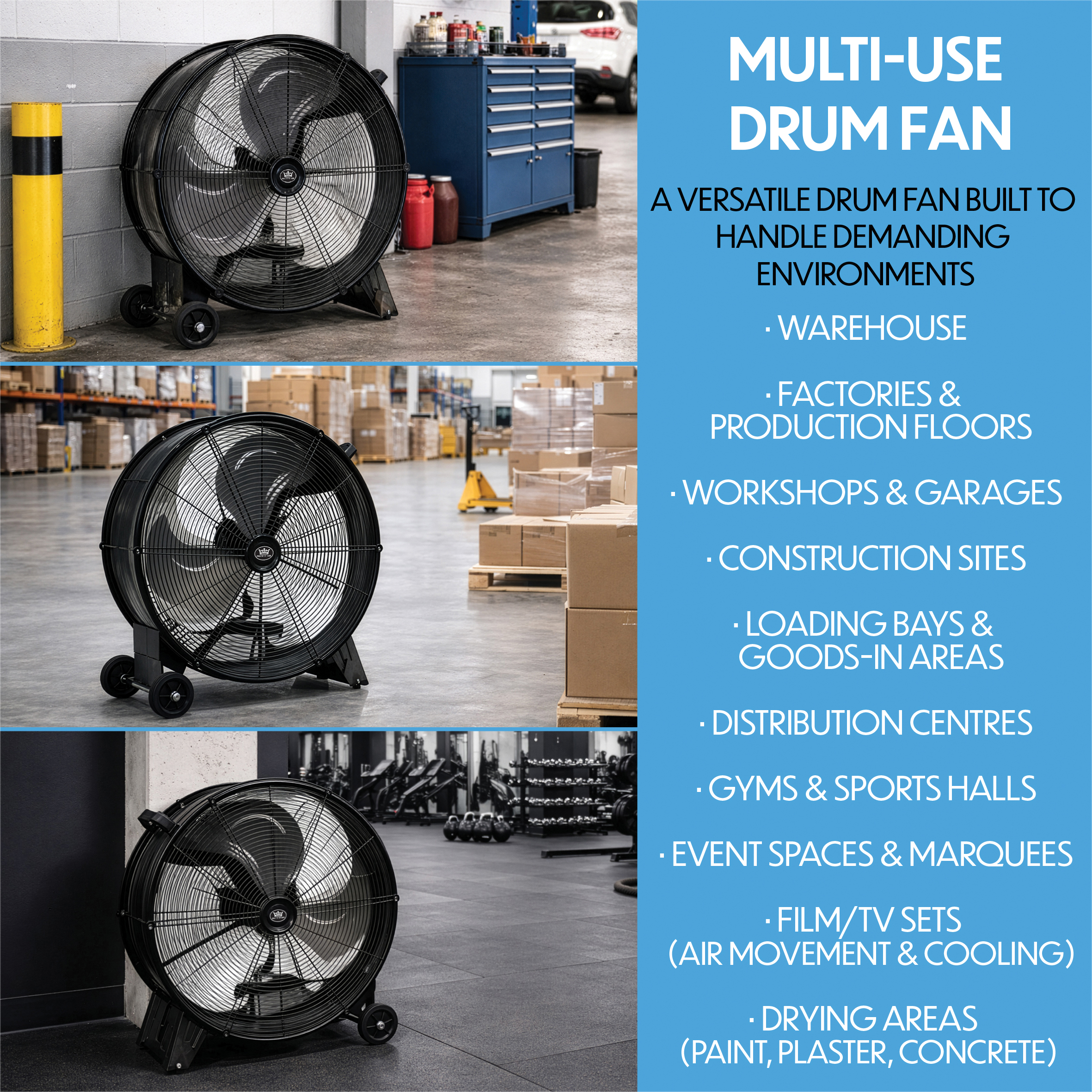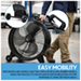 • Durable And Safe Industrial DesignHeavy duty steel housing and a strong tubular frame provide long lasting stability while the close mesh safety grille helps protect users from the rotating blades