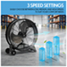• Three Adjustable Wind SpeedsEasily switch between low medium and high airflow using the control knob allowing powerful cooling that reaches across large spaces for even air distribution
