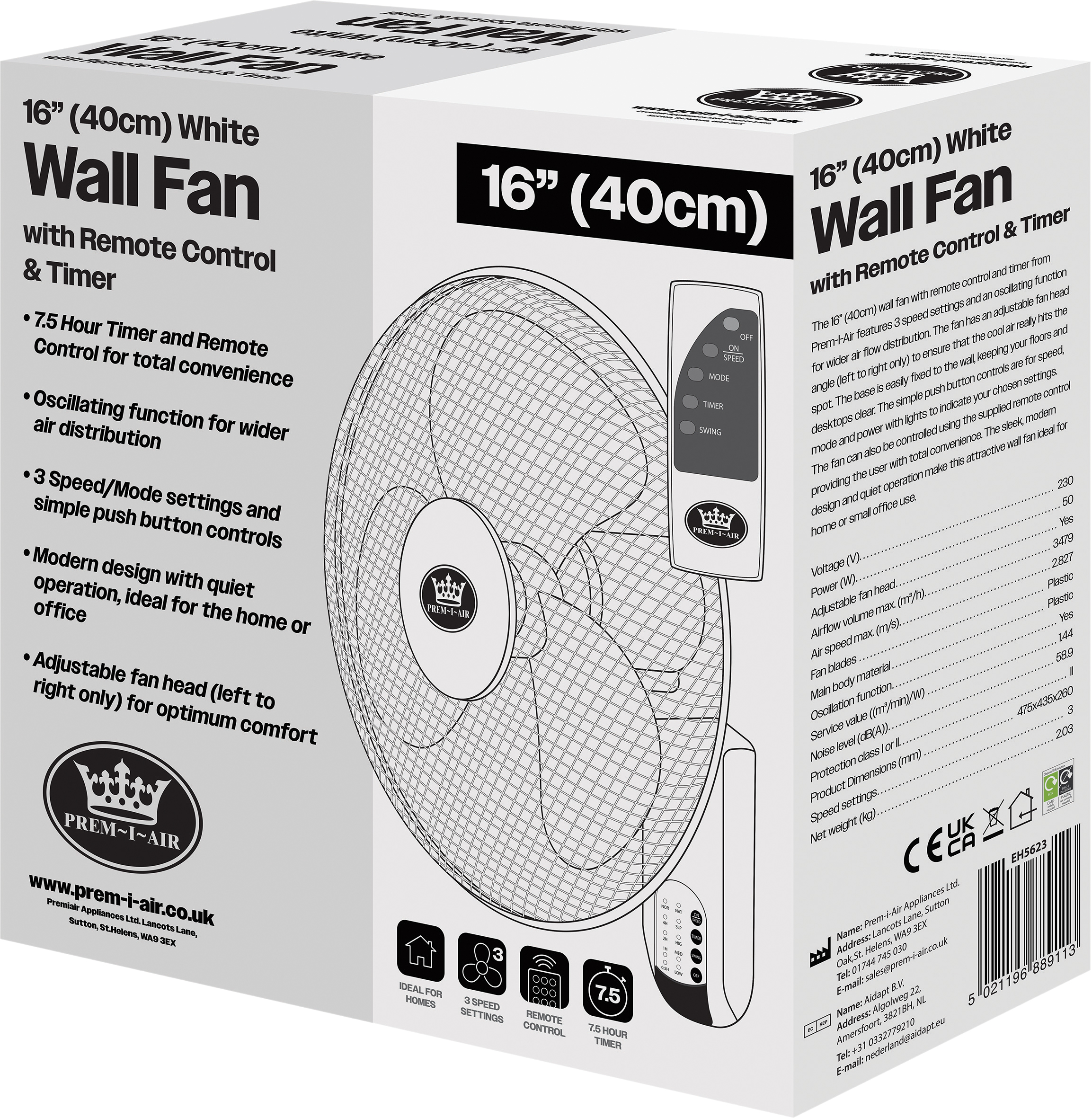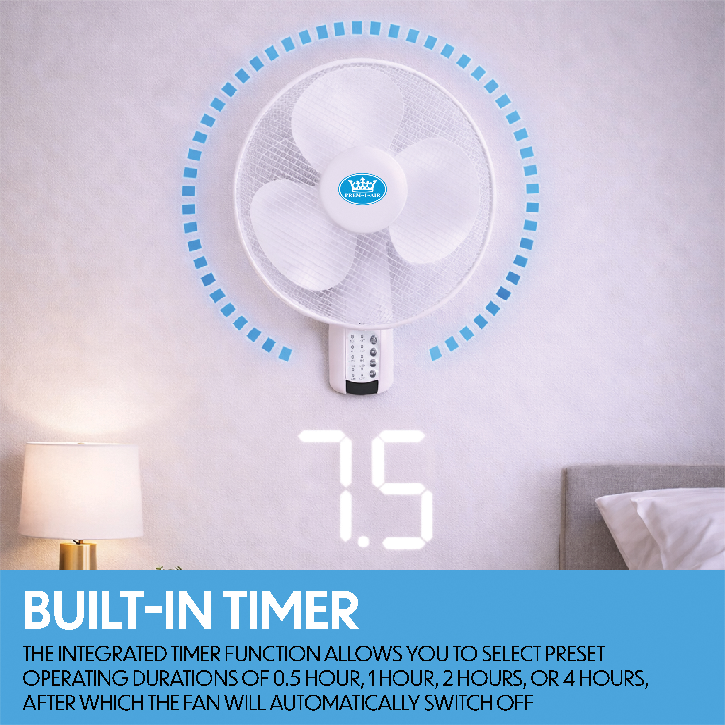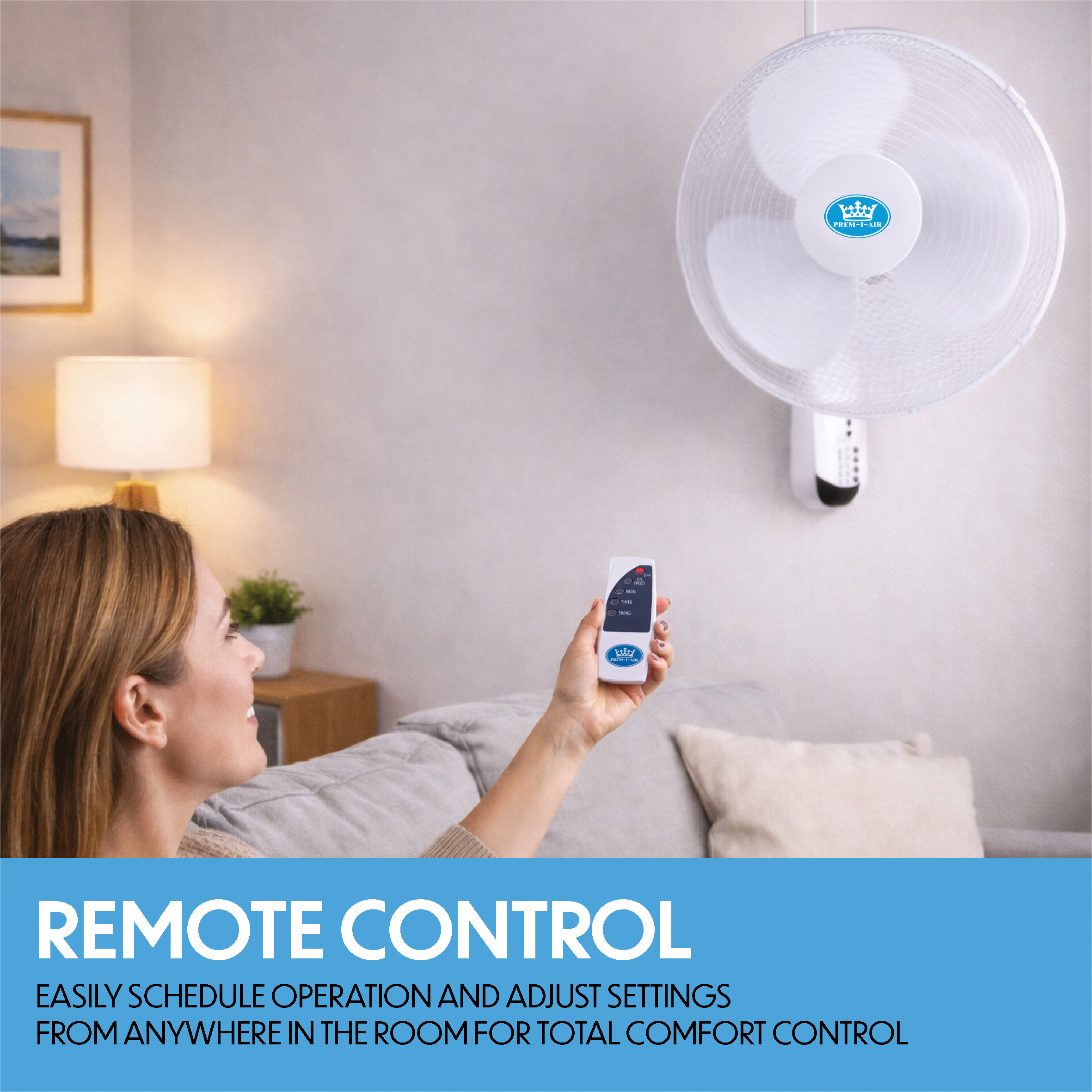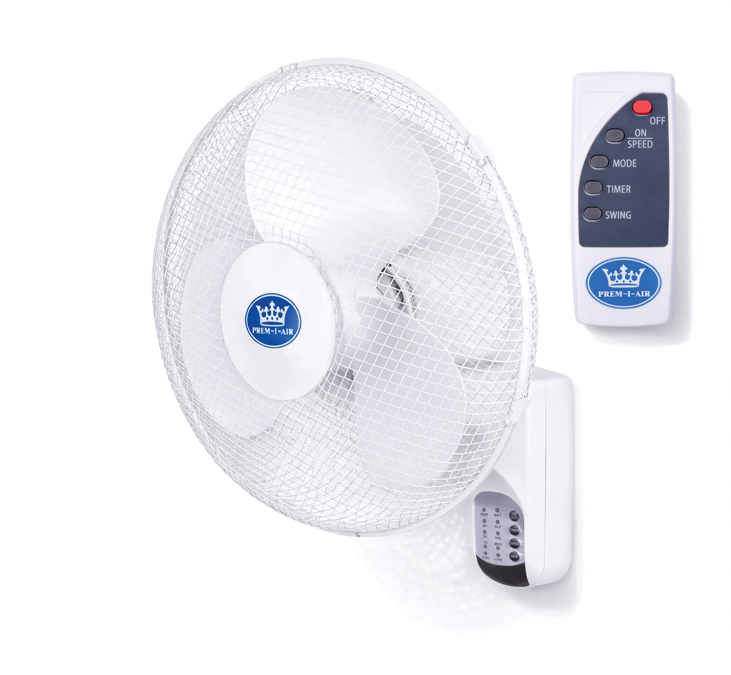 Prem-I-Air 16" Wall Fan with Remote, Timer, 3 Speeds, Oscillation & Adjustable Head