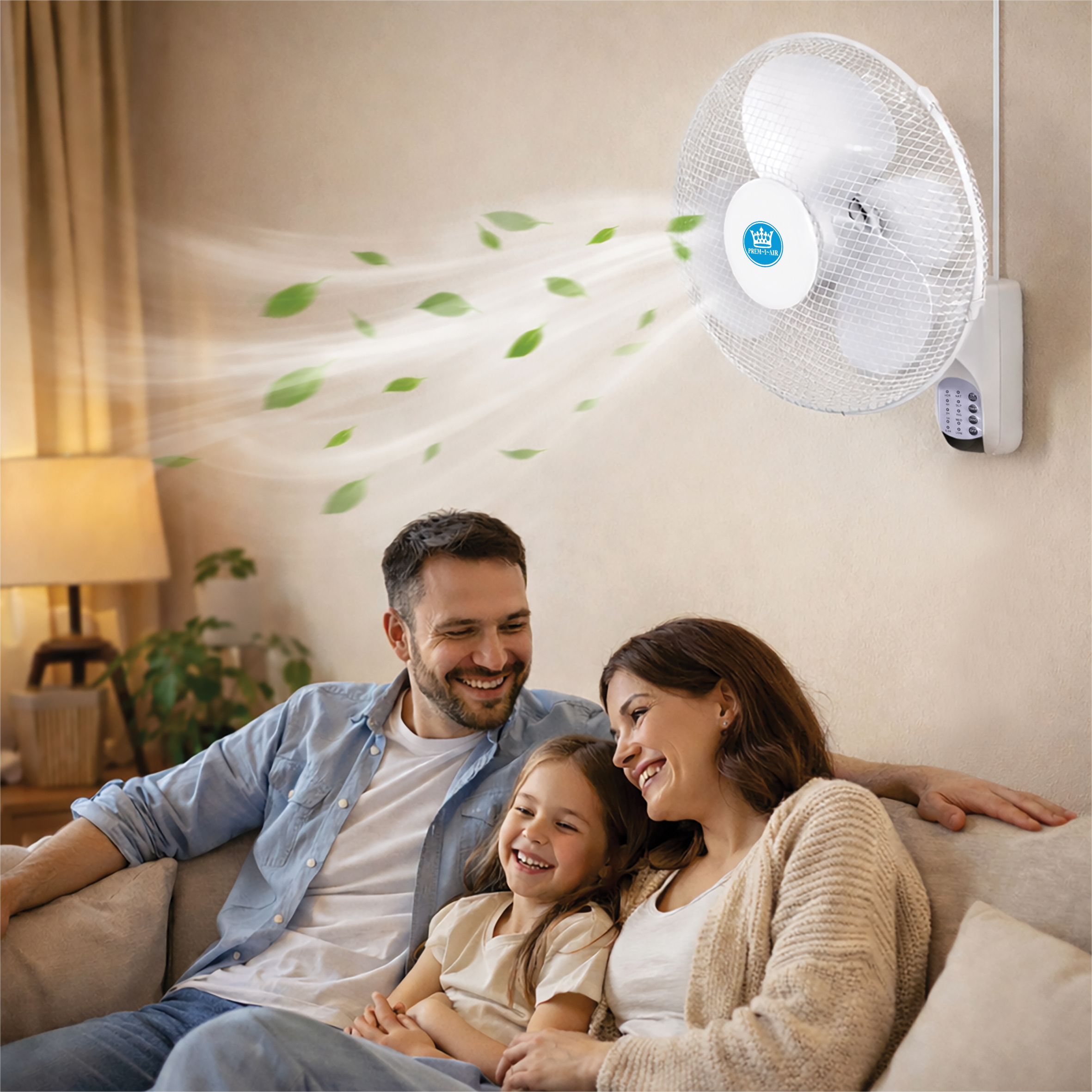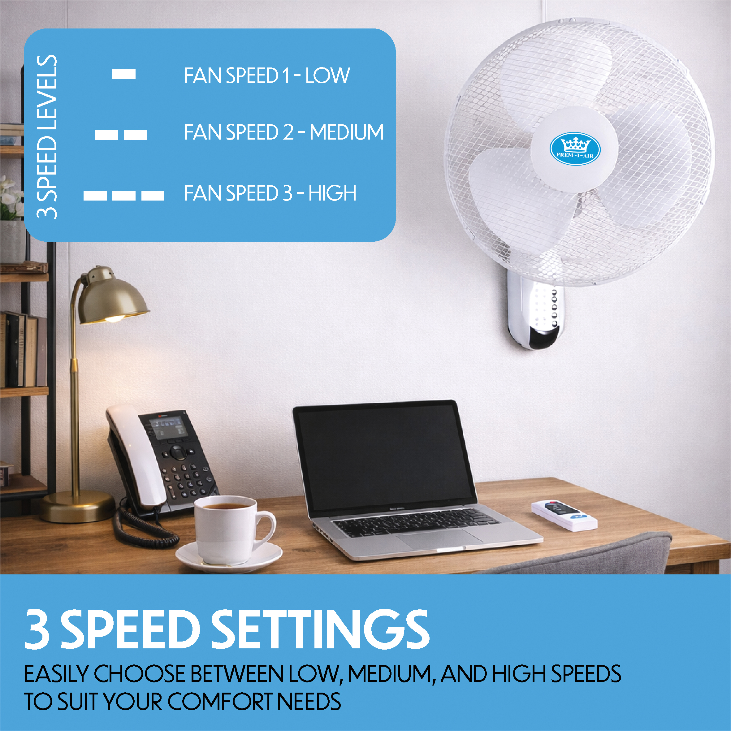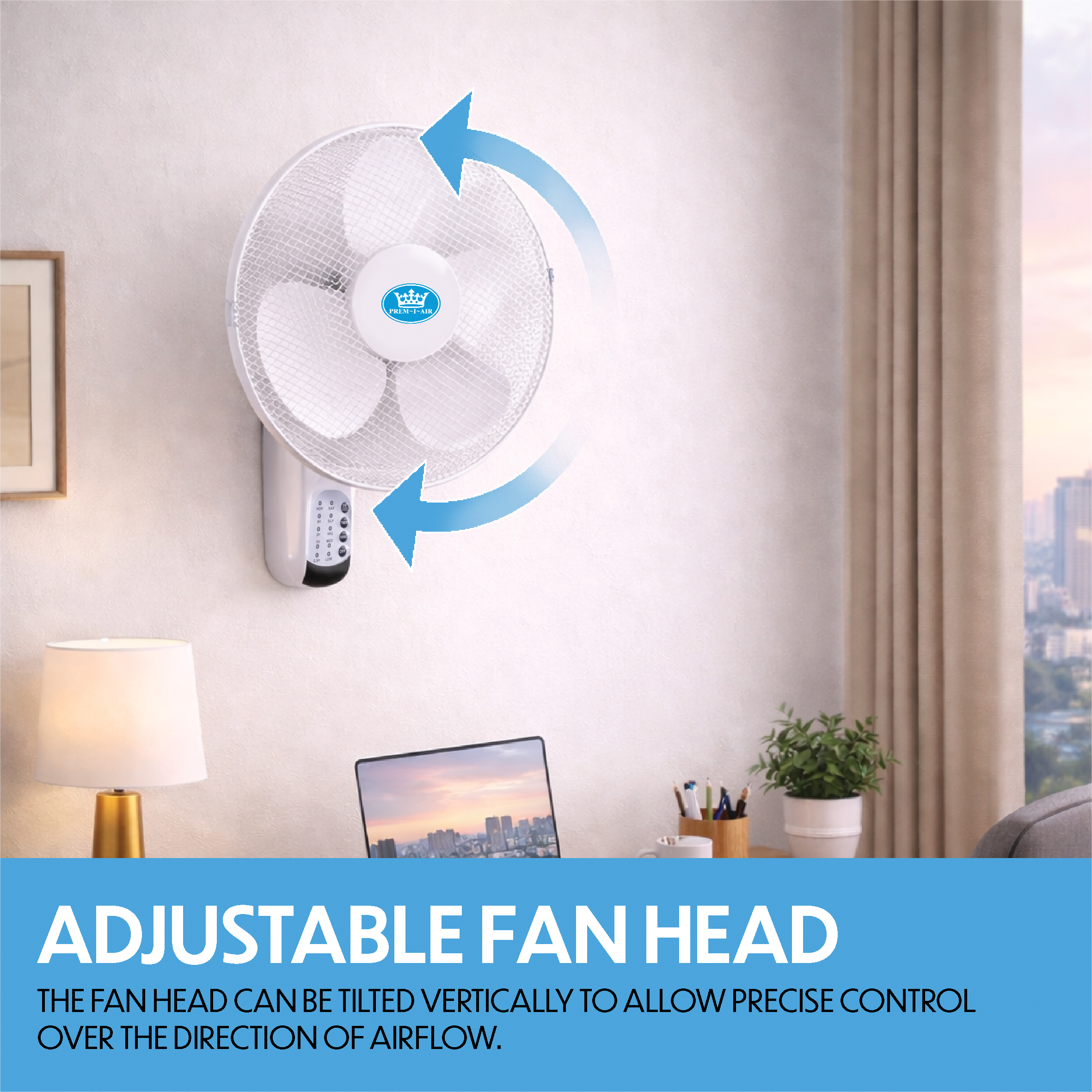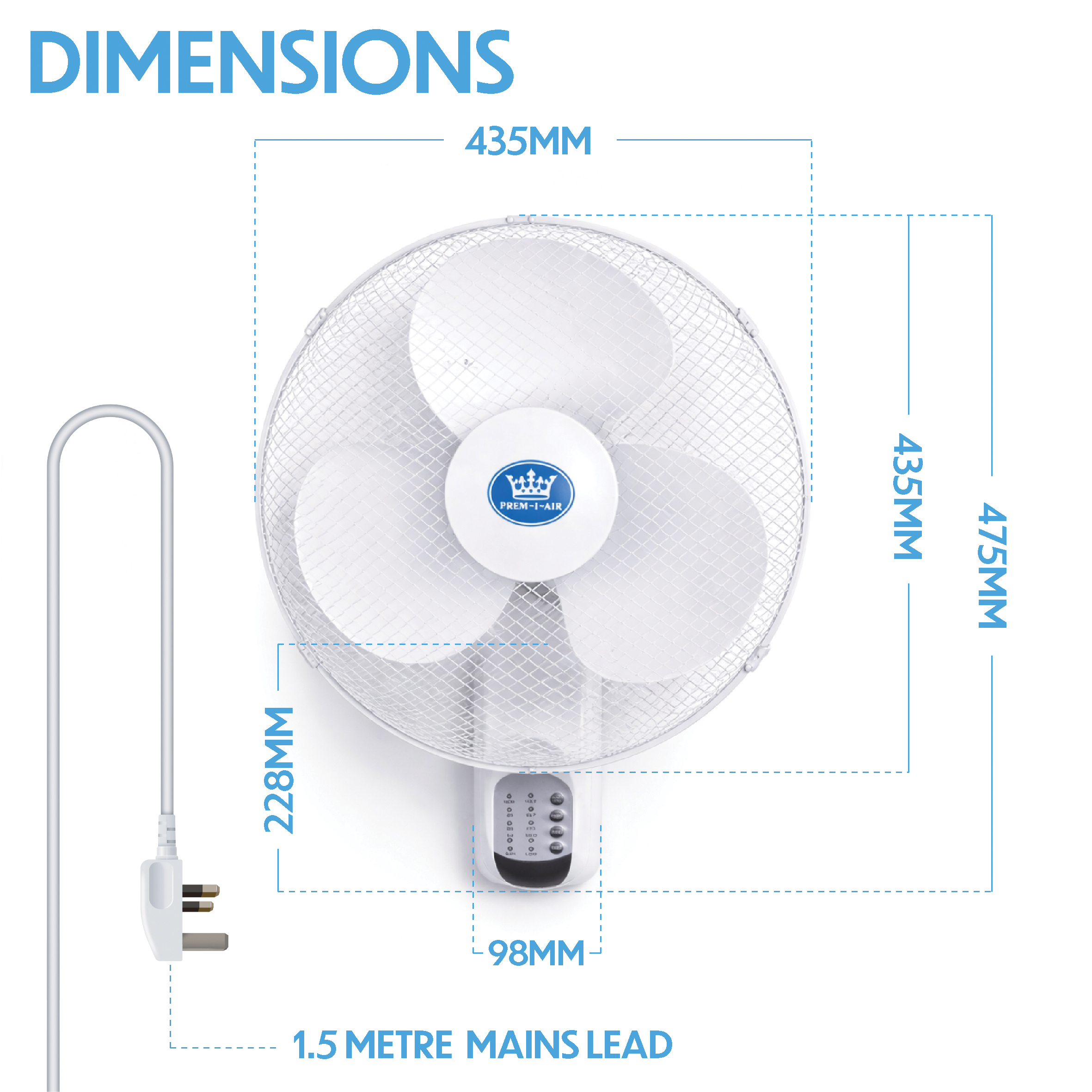 Prem-I-Air 16" Wall Fan with Remote, Timer, 3 Speeds, Oscillation & Adjustable Head