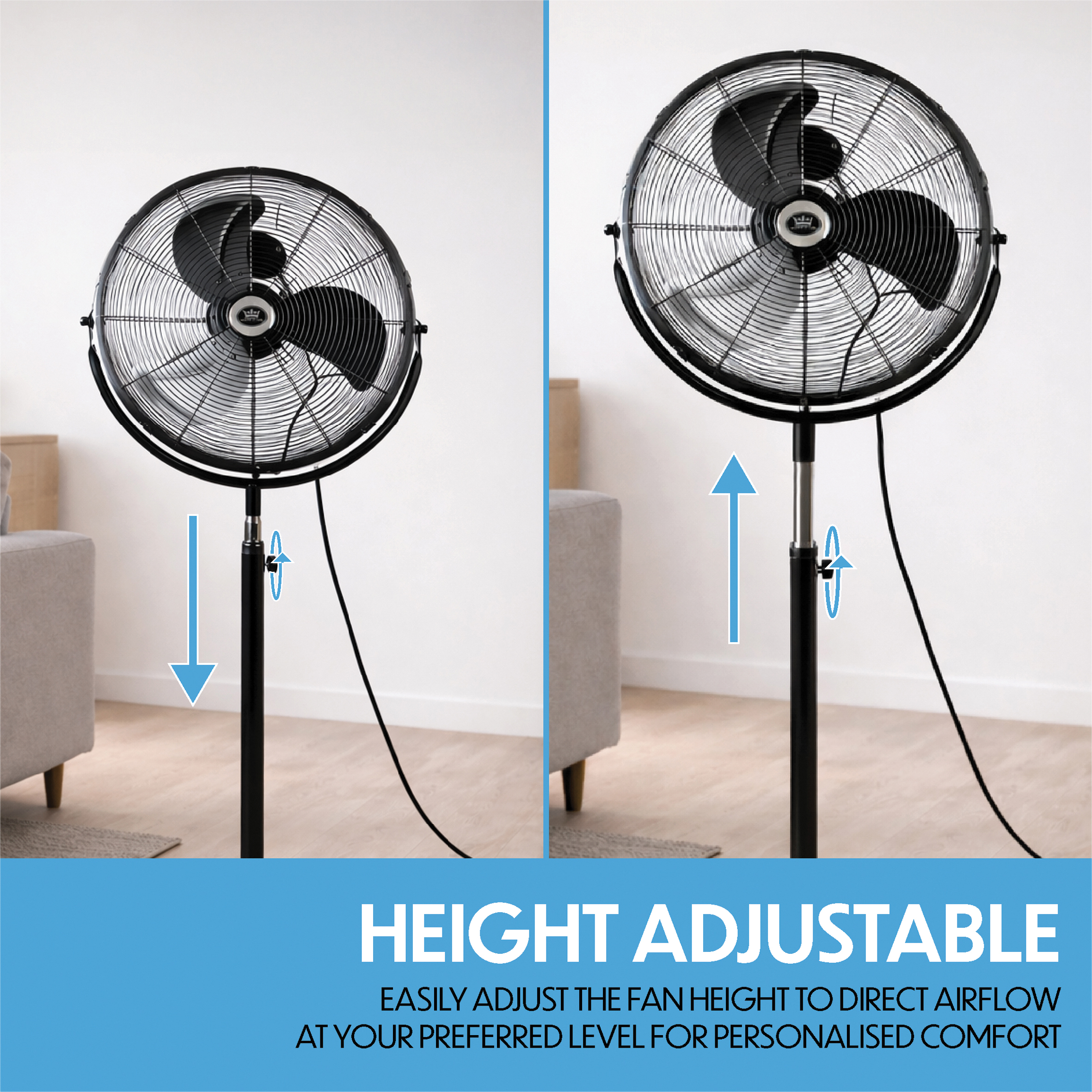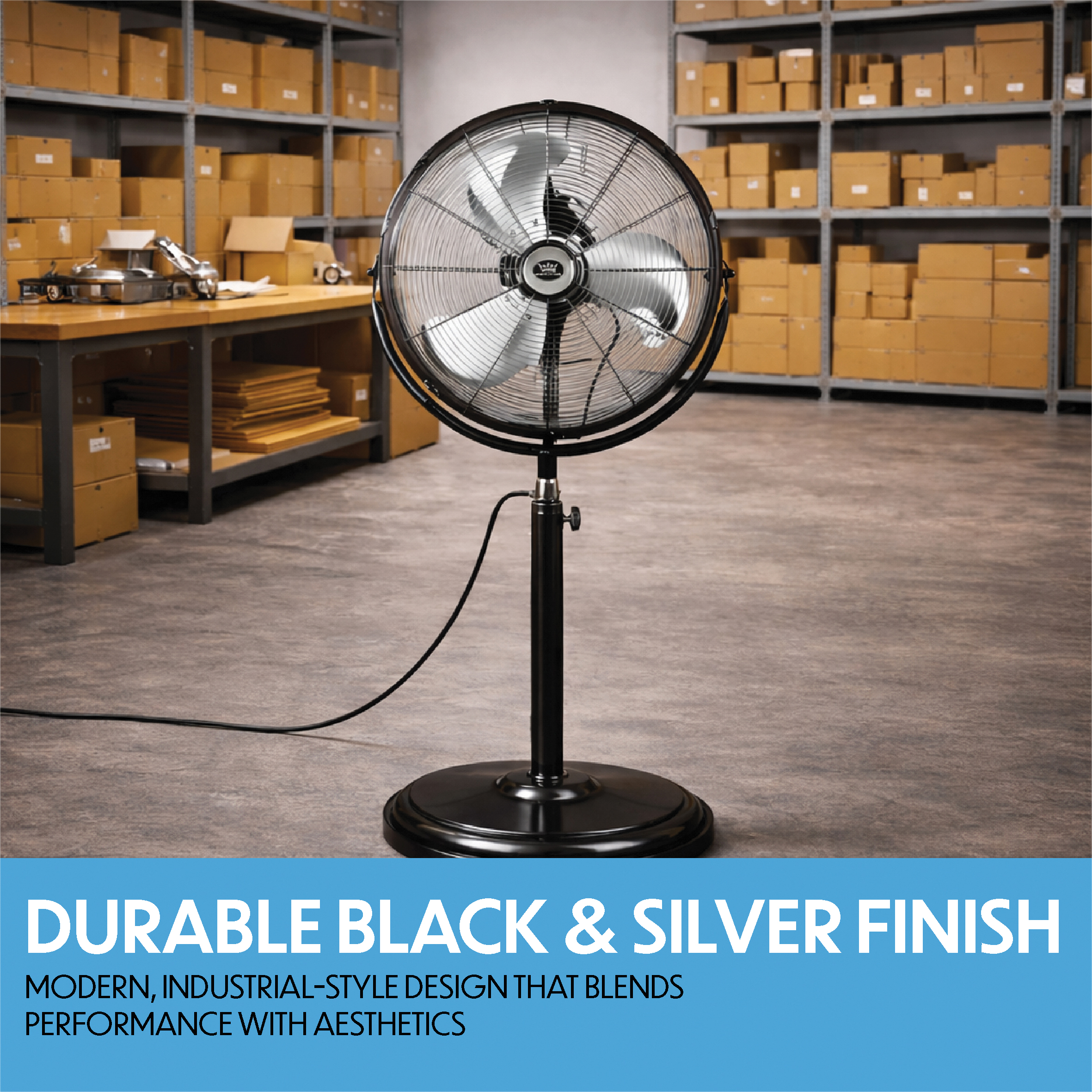 - High velocity airflow powered by a high-speed motor for maximum cooling in larger spaces