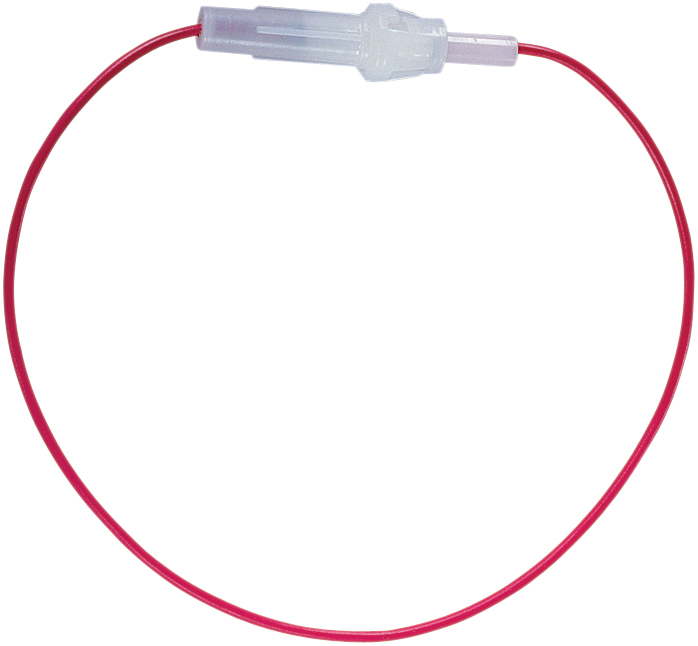 In-line white plastic car type fuseholder with heavy gauge wire tails fitted. For 32 mm fuse. Bulk version.