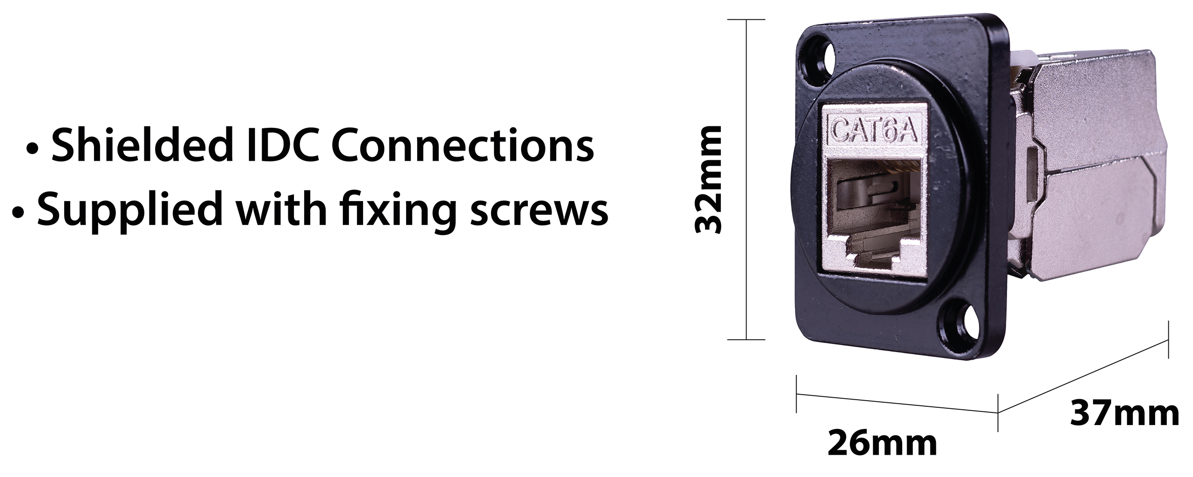 Chassis Mount D-Series compatible 6A Keystone Jack Shielded IDC Connections. Supplied with fixing screws.
