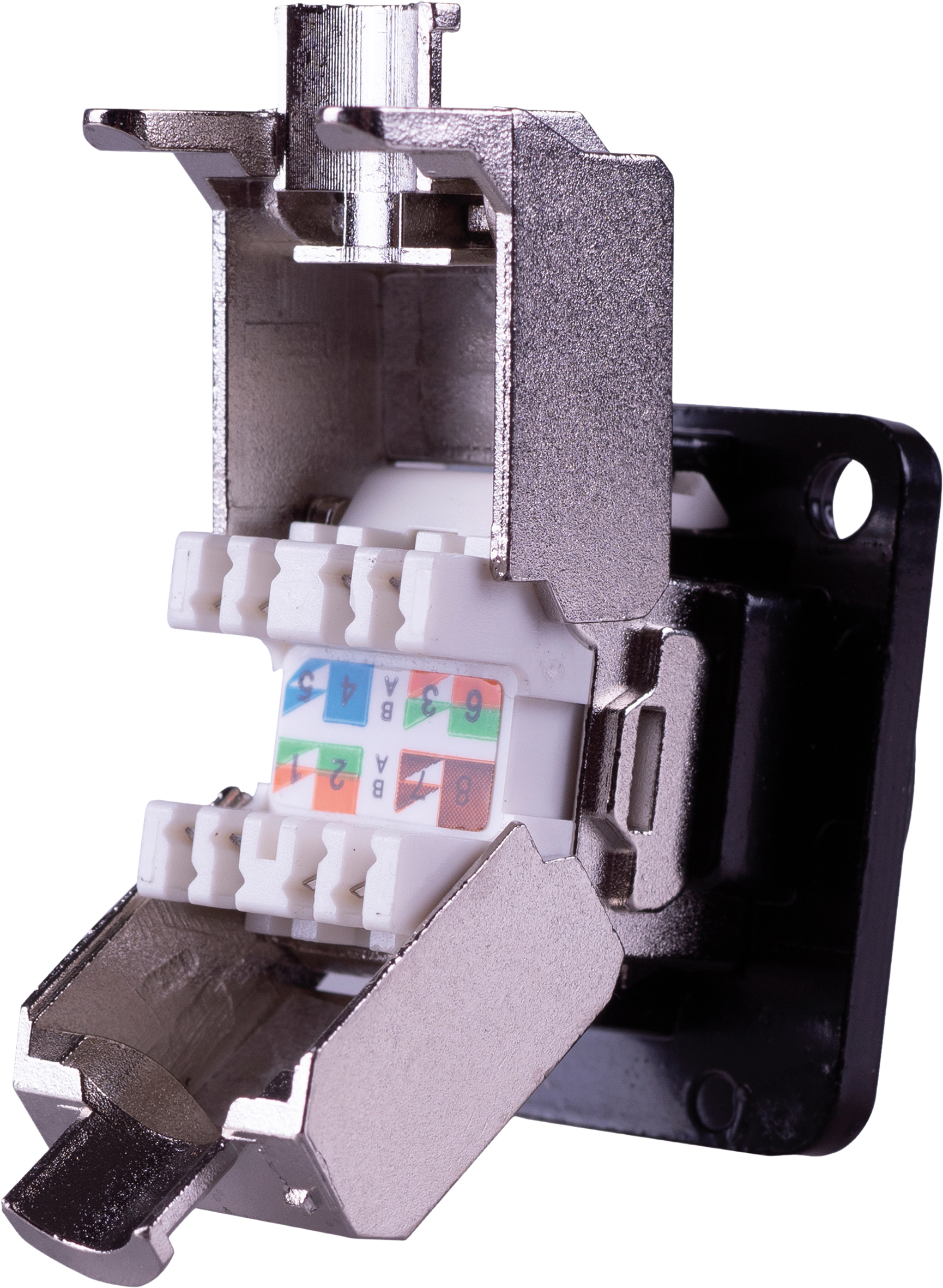 - Chassis Mount D-Series compatible 6A Keystone Jack Shielded IDC Connections