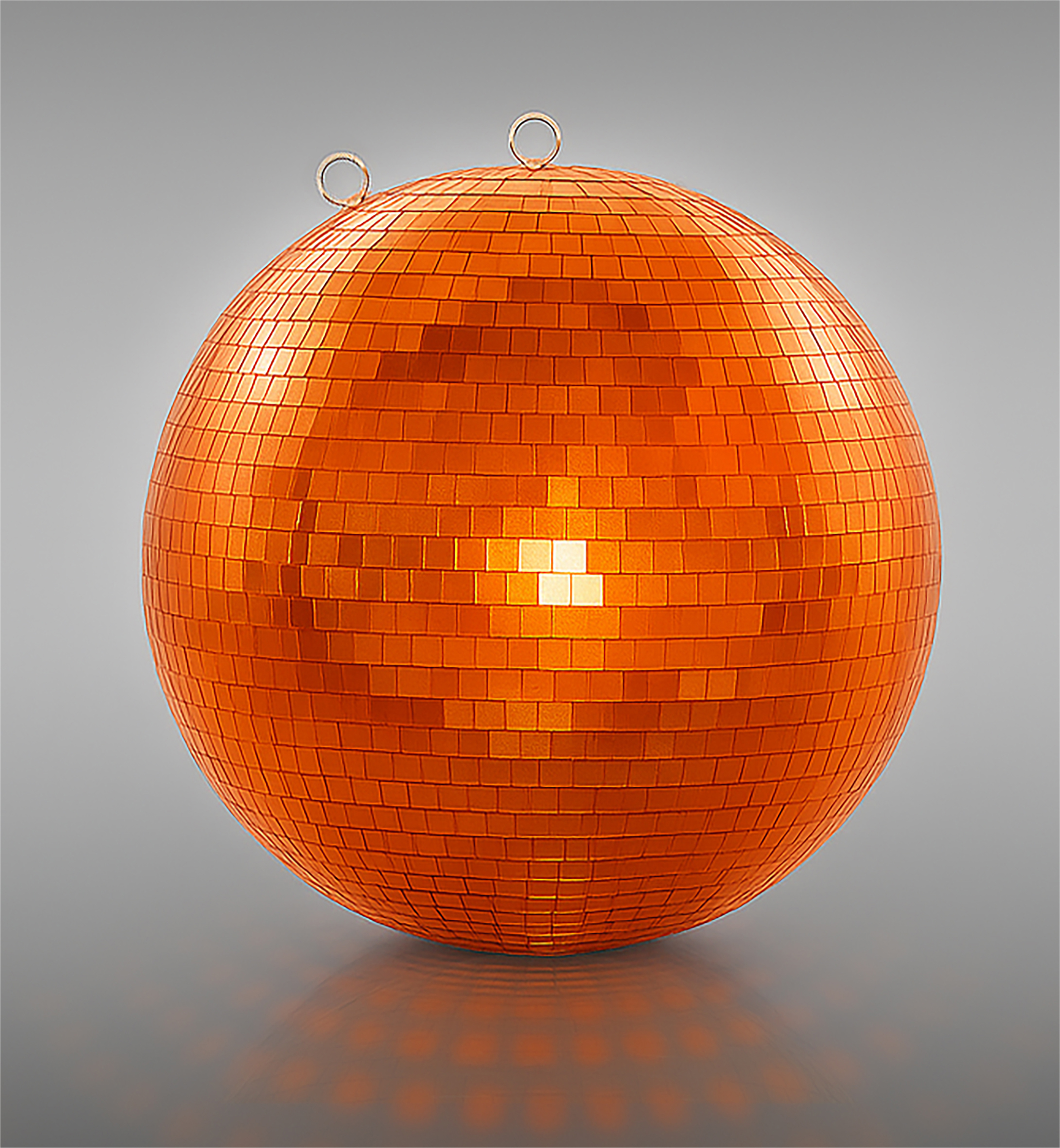 A lightweight rose gold mirror ball which creates a sparkling, shimmering light extravaganza adding an authentic disco atmosphere to parties, barbecues, dances, etc. when a spot light is shined at the ball. Made from lightweight material and covered with polished golden mirrored glass facets.