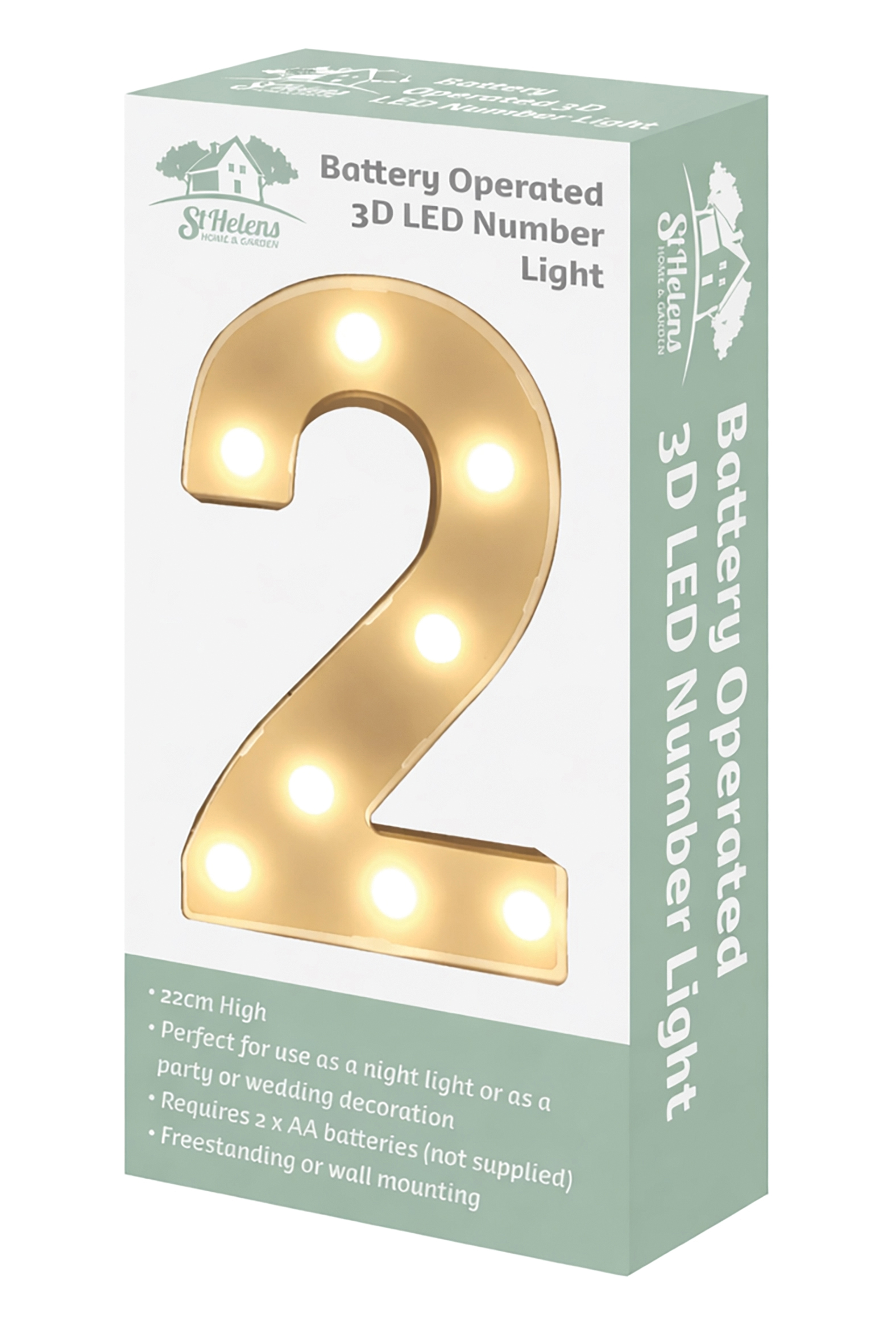 St Helens Home and Garden Battery Operated 3D LED Number Light. Warm White LED