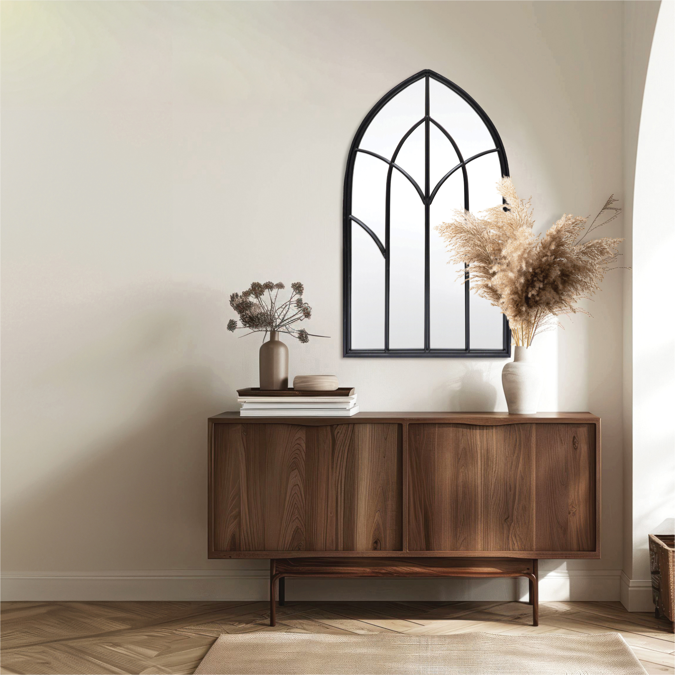 St Helens Home and Garden Gothic Arched Wall Mirror Black