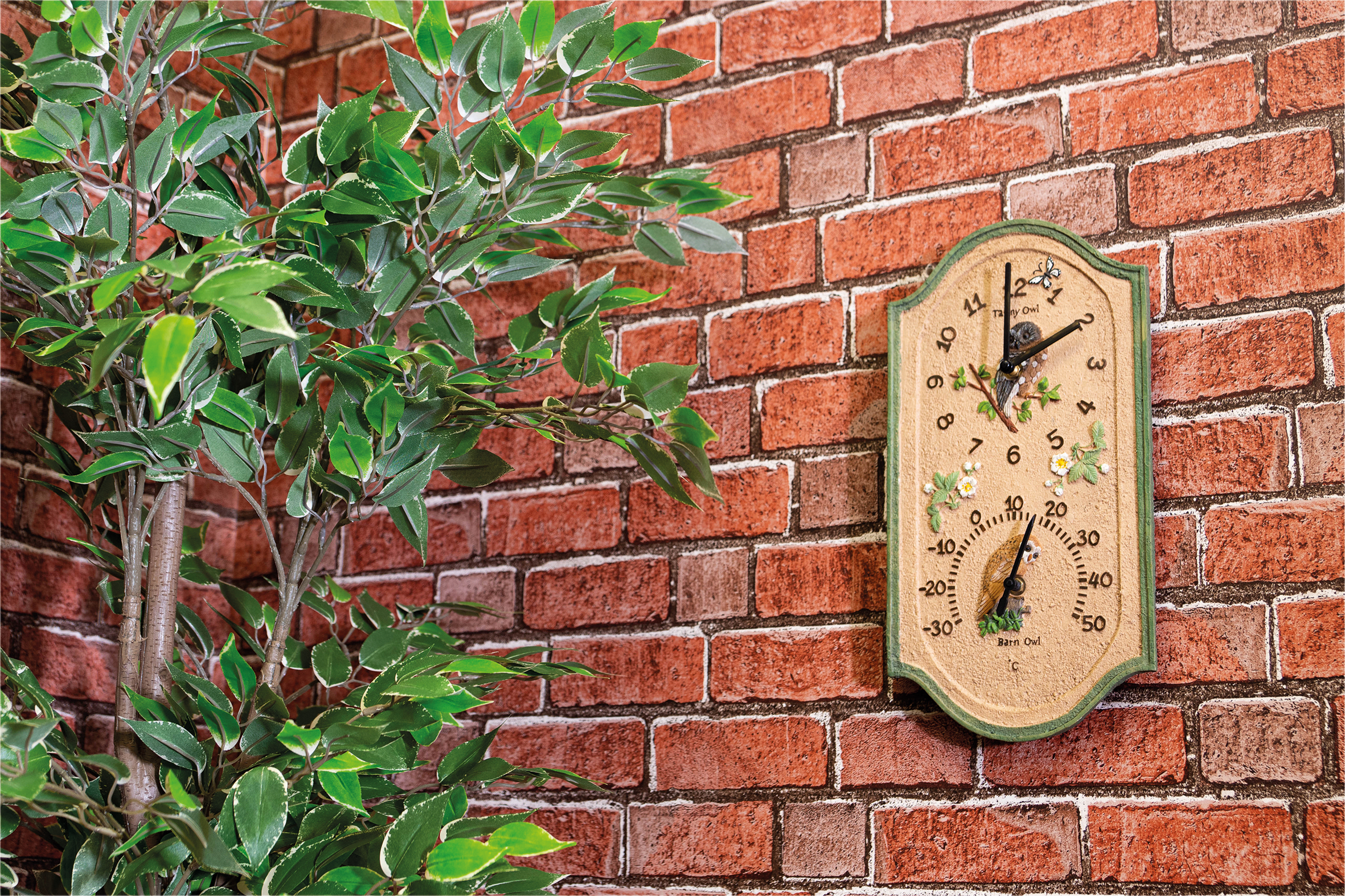 This fabulous decorative outdoor wall clock from St Helens Home Garden would make a welcome addition to any garden thanks to its charming owl design. The clock also features a handy thermometer which reads in C from -30 deg C to 50 deg C. The clock is hand painted and made from polyresin making it long lasting and suitable for the rigours of outdoor use. Supplied with a fitted metal hanging bracket meaning it is extremely quick and easy to mount on outdoor walls, fences, summer houses, conservatories and sheds. Sit back, enjoy the beauty of your garden and literally watch time go by. The clock requires 1x AA battery (not supplied).