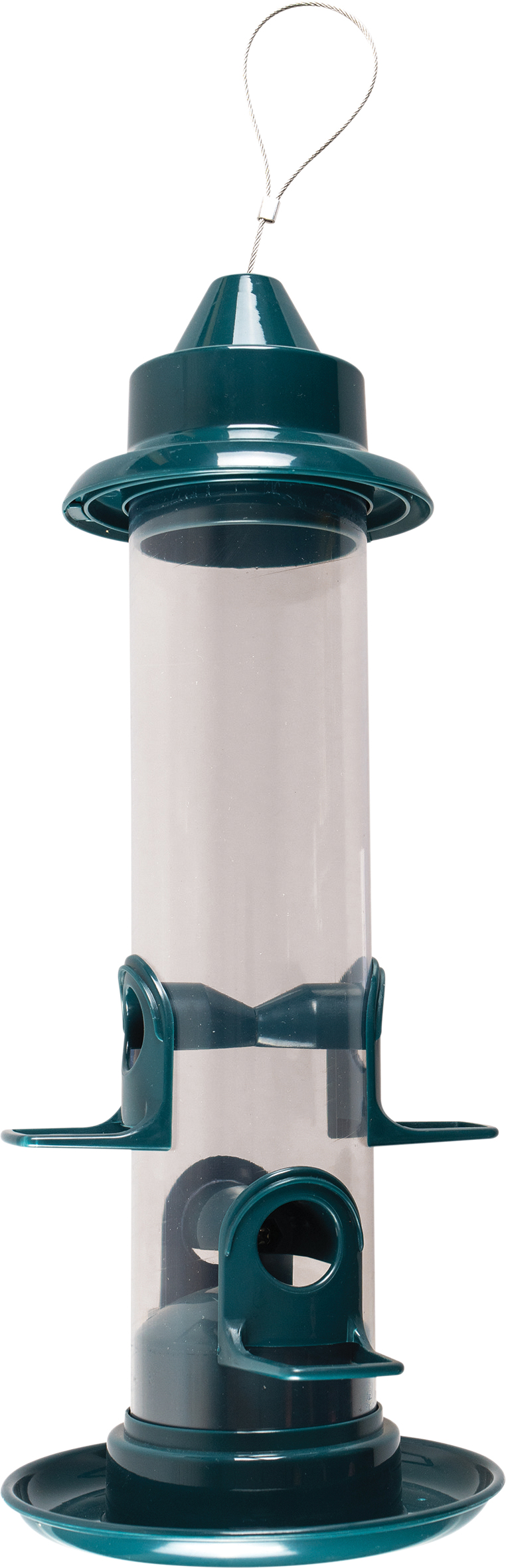 This hanging bird feeder from St Helens Home and Garden is perfect for attracting and feeding wild birds. There are 4 feeding points at the base of the feeder all with a perch. The top is removable allowing you to easily fill the feeder with seed, grains, nuts or worms. The feeder is a generous 34cm in height meaning it can hold a large amount of food for infrequent filling. The seed compartment is transparent making it easy to see when you need to refill. The strong metal handle can be used to securely attach the feeder to trees or other structures, place in a prominent place in your garden and enjoy watching the wild birds as they come and go.