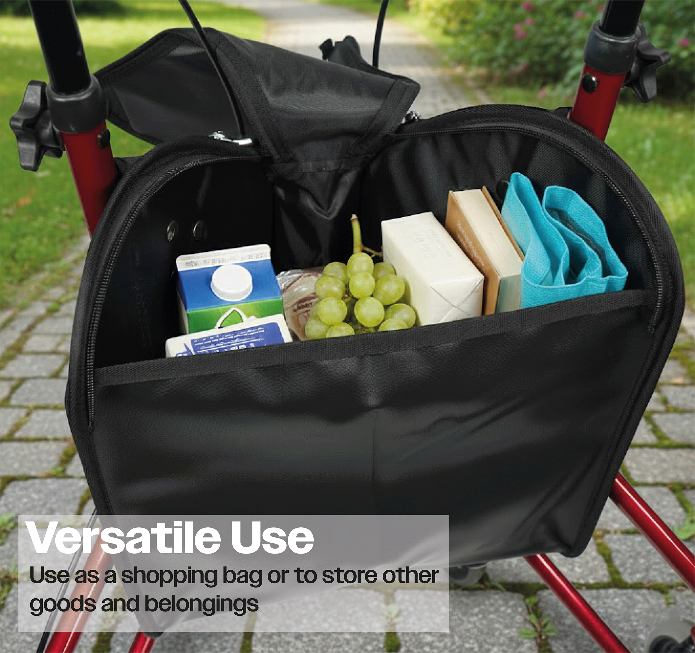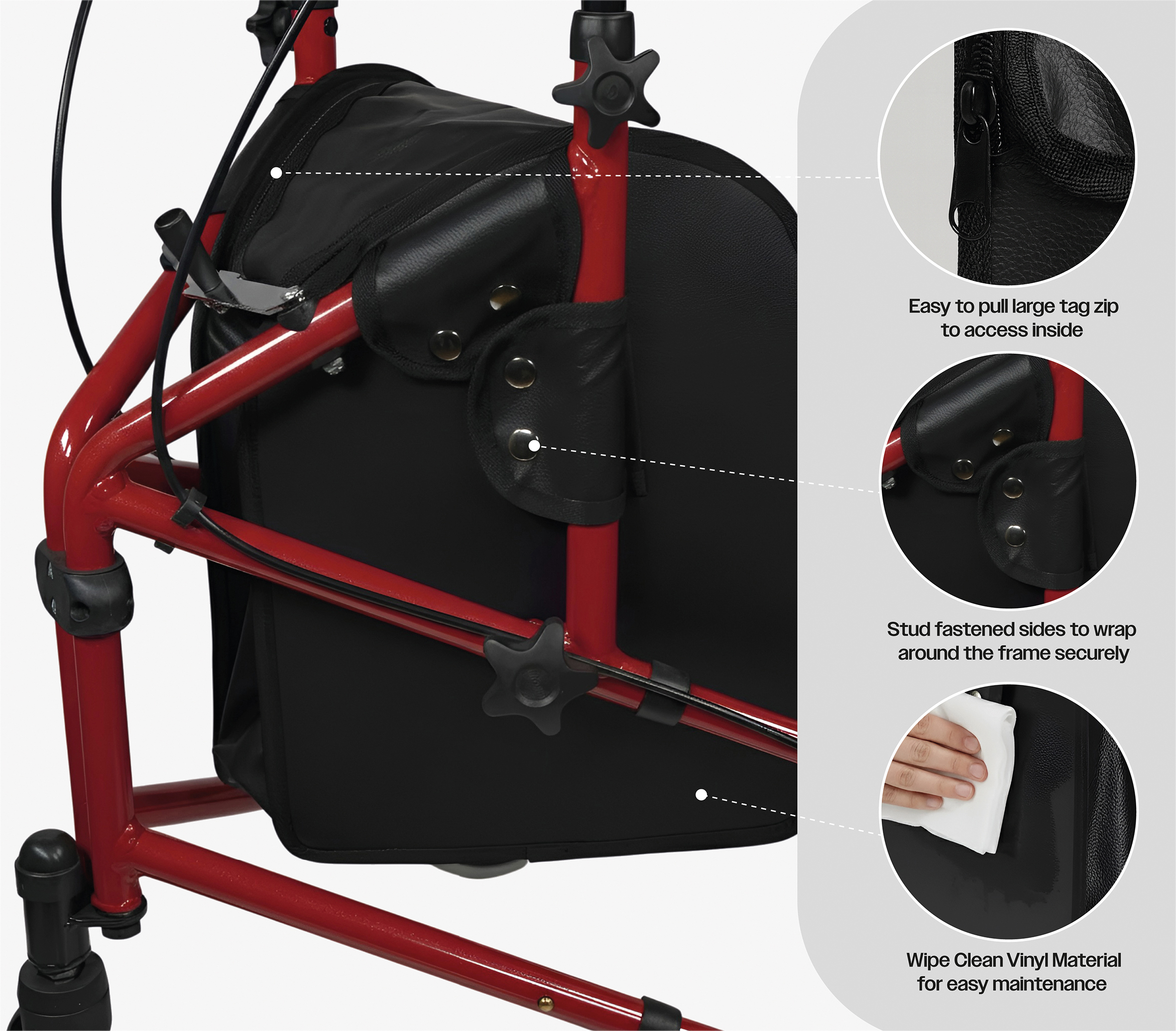 A removeable bag for the Aidapt Tri-Walker range with a wipe-clean, black vinyl finish.