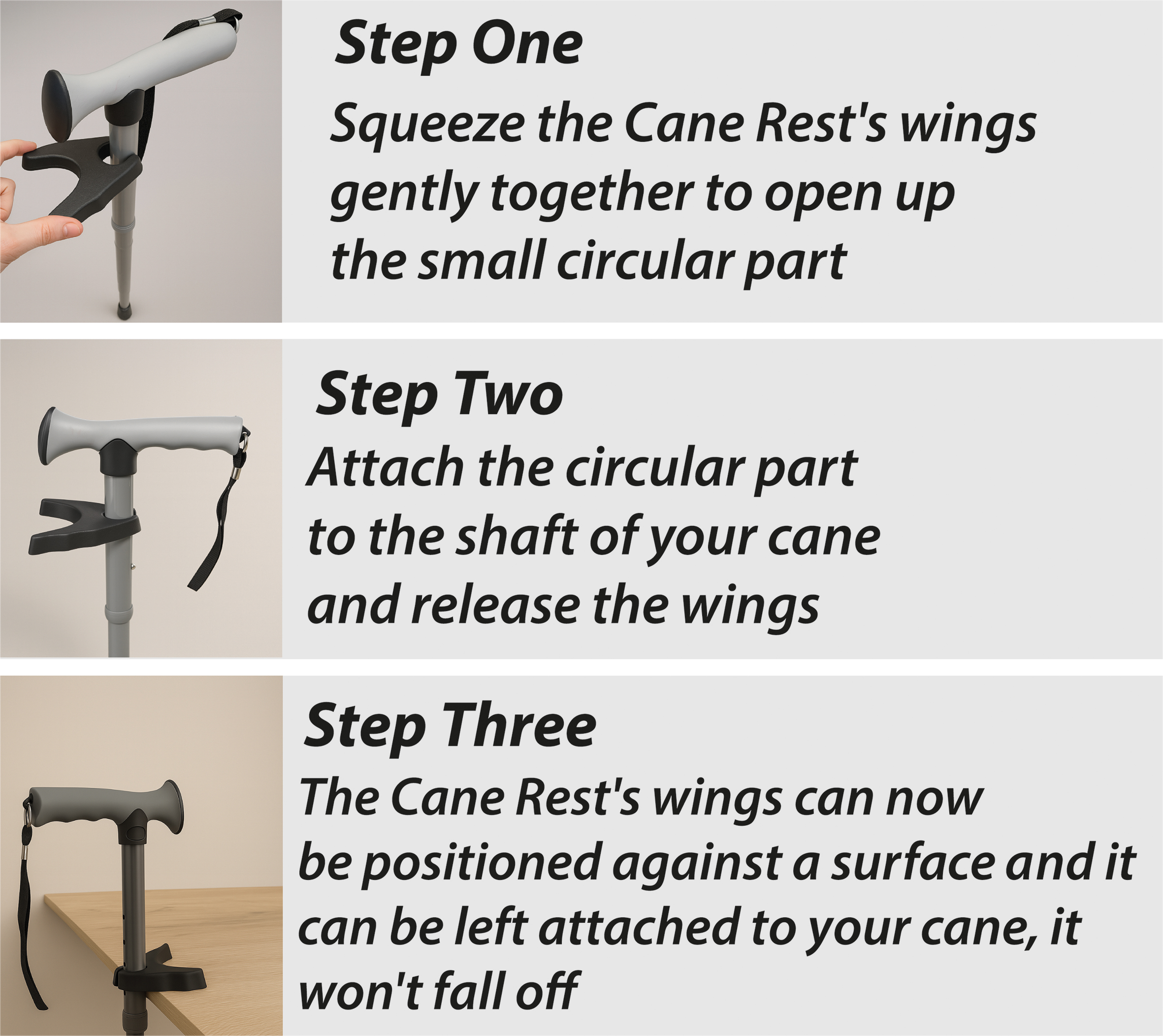- Prevents Falls – Allows the stick to rest against a table, counter, or other surface instead of falling to the floor