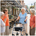 Four Wheeled Foldable Rollator with a steel frame, padded seat and shopping bag.